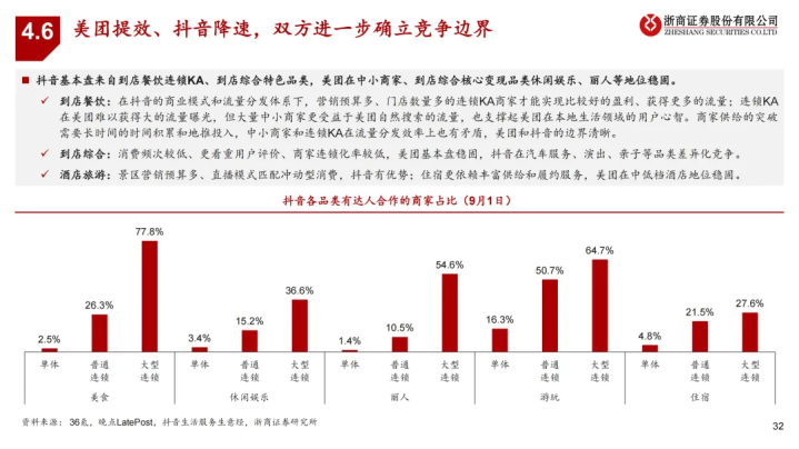 而在到店方面,抖音也逐渐确立了一些能力擅长的边界,基本盘占住了营销预算多、能承接大流量的连锁餐饮KA,匹配短视频的景区、演出等等。