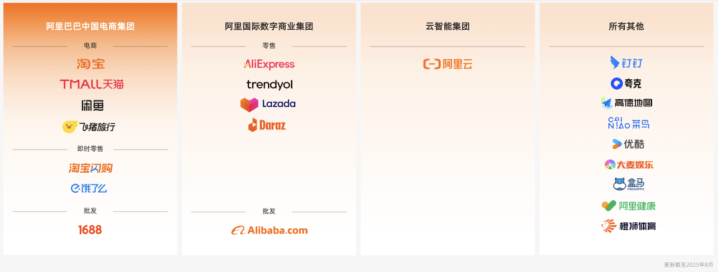 最新板块调整,原有的本地生活集团业务被拆分,饿了么被归入阿里中国电商集团